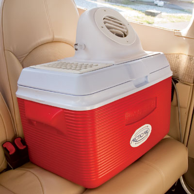 Using the product is easy. Just fill it up with ice shortly before you leave and turn on the fan. Evaporative cooling does the rest. The fan draws warm air over the ice and cools it. The cool air is then blown out of the cooler and into the airplane. It doesn’t get much simpler than that. No installation required by your mechanic and no FAA 337 forms to be filled out.
